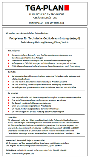 Zur Zeit haben wir folgende Stellen zu besetzen
